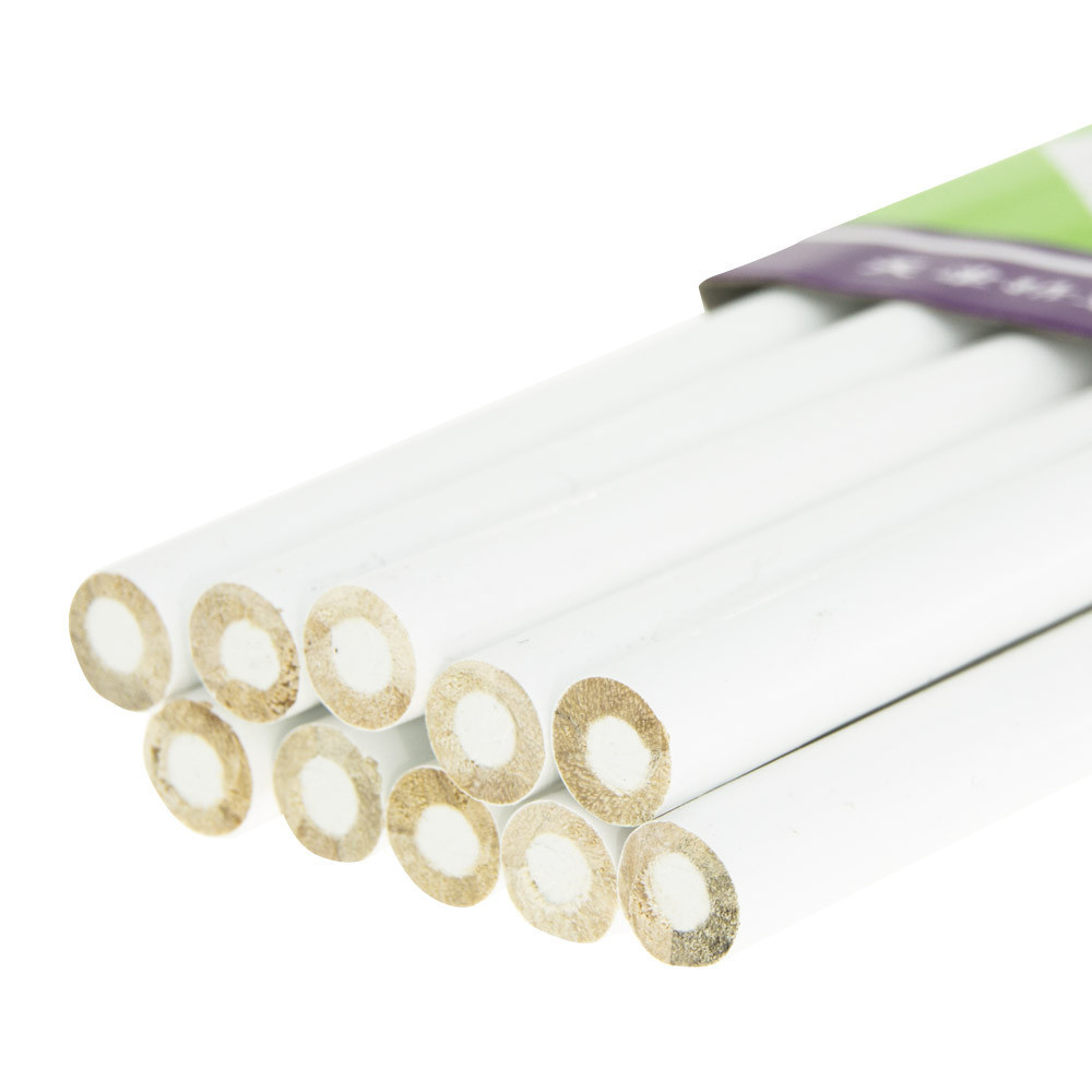 Het potlood bestaat uit een meerlaags papieren omhulsel en een witte waskern.