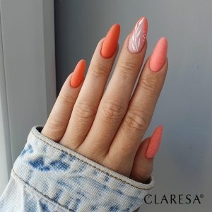 Breng op de eerder uitgeharde Claresa Base Gel een dunne laag gekleurde Gel lak aan en hard deze uit in een UV/LED lamp. Om een bevredigend effect te bereiken, kunt u de activiteit herhalen. Bescherm de styling door Claresa TOP Coat aan te brengen en uit te harden.