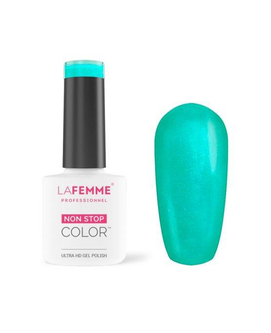De speciale formulering van deze semipermanente Gel Polish zorgt voor een perfecte verbinding met het oppervlak van de natuurlijke nagel en creëert een gladde structuur. Gel Polish versterkt en beschermt de natuurlijke nagel. De polymerisatie geeft de perfecte hardheid en daardoor blijft de Gel Polish meer dan 3 weken zitten. Gel Polish heeft een sterke weerstand tegen krassen en slijtage. Non Stop Color Gel Polish kan bovendien gemakkelijk worden verwijderd in 5-10 minuten. Dit is afhankelijk van het type gel verwijderaar dat je kiest. De Gel verwijderaars van La Femme zijn verrijkt met lanoline of capryl-extract, dit voorkomt overmatige uitdroging van de huid en natuurlijke nagels.