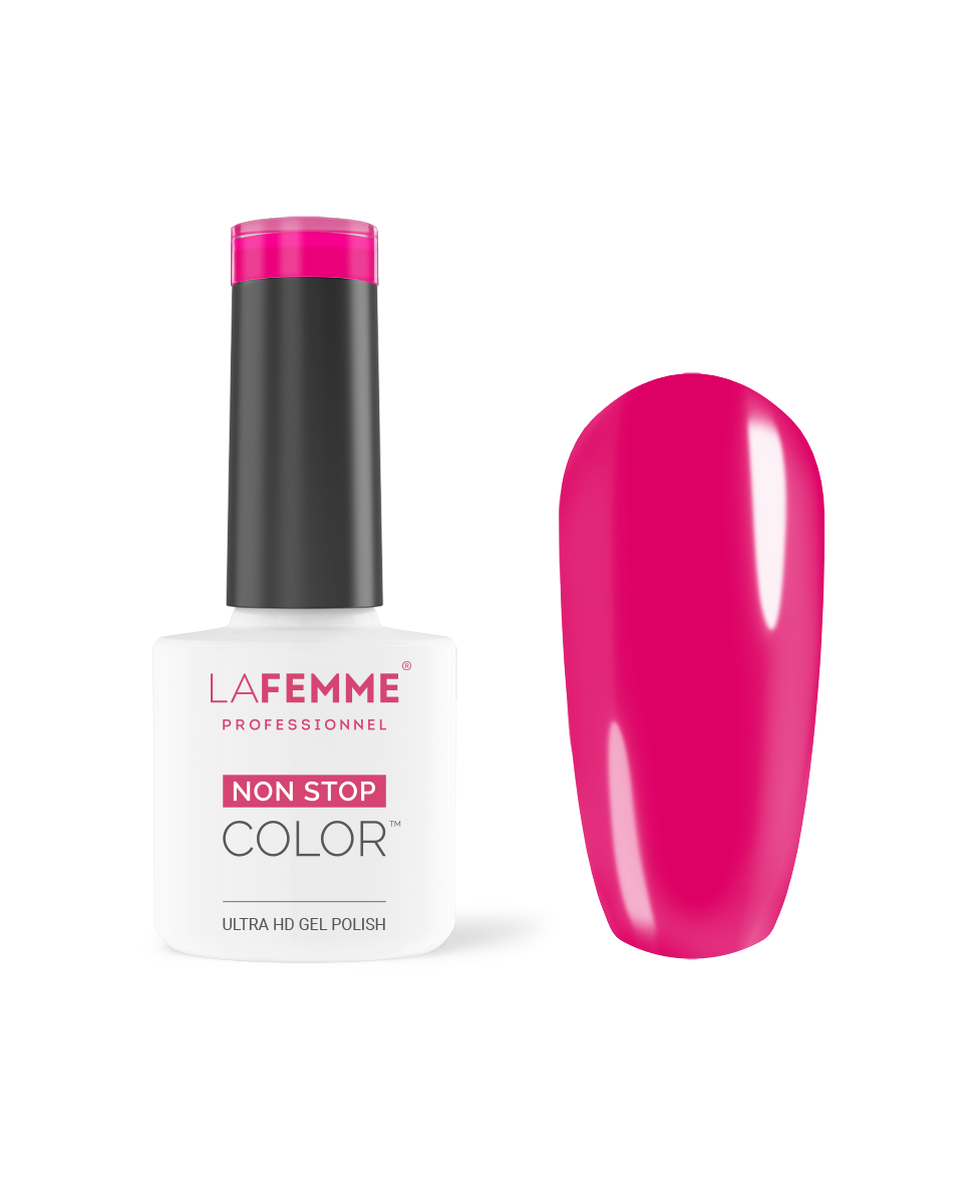 La Femme Gel Polish Non Stop Color ™ is verkrijgbaar in meer dan 200 kleuren en nu in 2 formules: de klassieke en de innovatieve Ultra HD, deze is dikker en geeft een flexibele afwerking met 3D-effect dat de voordelen van semi-permanente Gel Polish combineert met een perfecte dekking vanaf de eerste laag die je aanbrengt. Bovendien, kun je dankzij de "Self Leveling" een uiterst glad nageloppervlak krijgen, doordat lichte oneffenheden worden opgevuld.