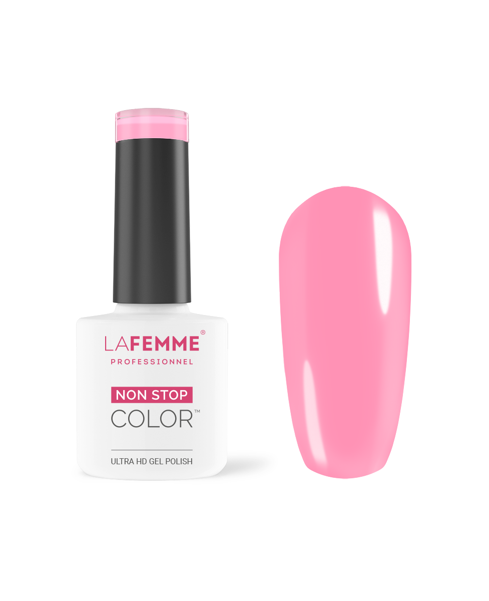 La Femme Gel Polish Non Stop Color ™ is verkrijgbaar in meer dan 200 kleuren en nu in 2 formules: de klassieke en de innovatieve Ultra HD, deze is dikker en geeft een flexibele afwerking met 3D-effect dat de voordelen van semi-permanente Gel Polish combineert met een perfecte dekking vanaf de eerste laag die je aanbrengt. Bovendien, kun je dankzij de "Self Leveling" een uiterst glad nageloppervlak krijgen, doordat lichte oneffenheden worden opgevuld.
