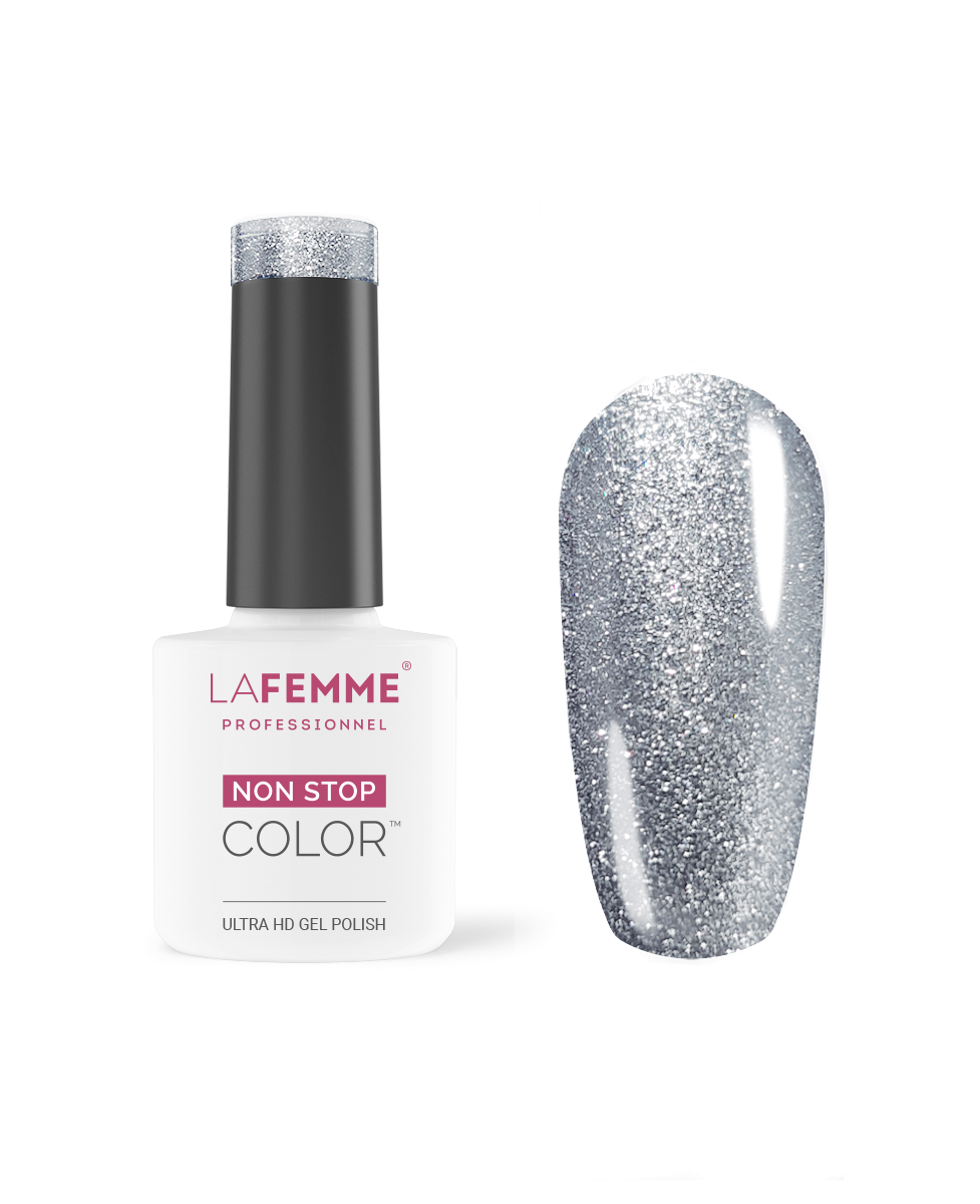 La Femme Gel Polish Non Stop Color ™ is verkrijgbaar in meer dan 200 kleuren en nu in 2 formules: de klassieke en de innovatieve Ultra HD, deze is dikker en geeft een flexibele afwerking met 3D-effect dat de voordelen van semi-permanente Gel Polish combineert met een perfecte dekking vanaf de eerste laag die je aanbrengt. Bovendien, kun je dankzij de "Self Leveling" een uiterst glad nageloppervlak krijgen, doordat lichte oneffenheden worden opgevuld.