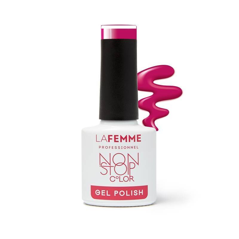 De speciale formulering van deze semipermanente Gel Polish zorgt voor een perfecte verbinding met het oppervlak van de natuurlijke nagel en creëert een gladde structuur. Gel Polish versterkt en beschermt de natuurlijke nagel. De polymerisatie geeft de perfecte hardheid en daardoor blijft de Gel Polish meer dan 3 weken zitten. Gel Polish heeft een sterke weerstand tegen krassen en slijtage. Non Stop Color Gel Polish kan bovendien gemakkelijk worden verwijderd in 5-10 minuten. Dit is afhankelijk van het type gel verwijderaar dat je kiest. De Gel verwijderaars van La Femme zijn verrijkt met lanoline of capryl-extract, dit voorkomt overmatige uitdroging van de huid en natuurlijke nagels.