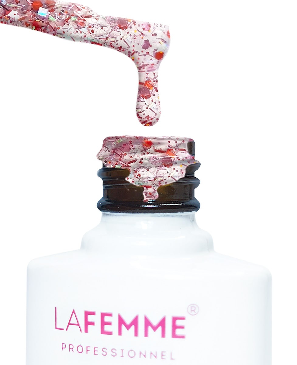 | Kleur | La Femme Gel Polish wordt geleverd met een speciale dop die een echte kleurdruppel bevat, waarmee je de gewenste kleur kunt zien zonder het flesje te openen. |