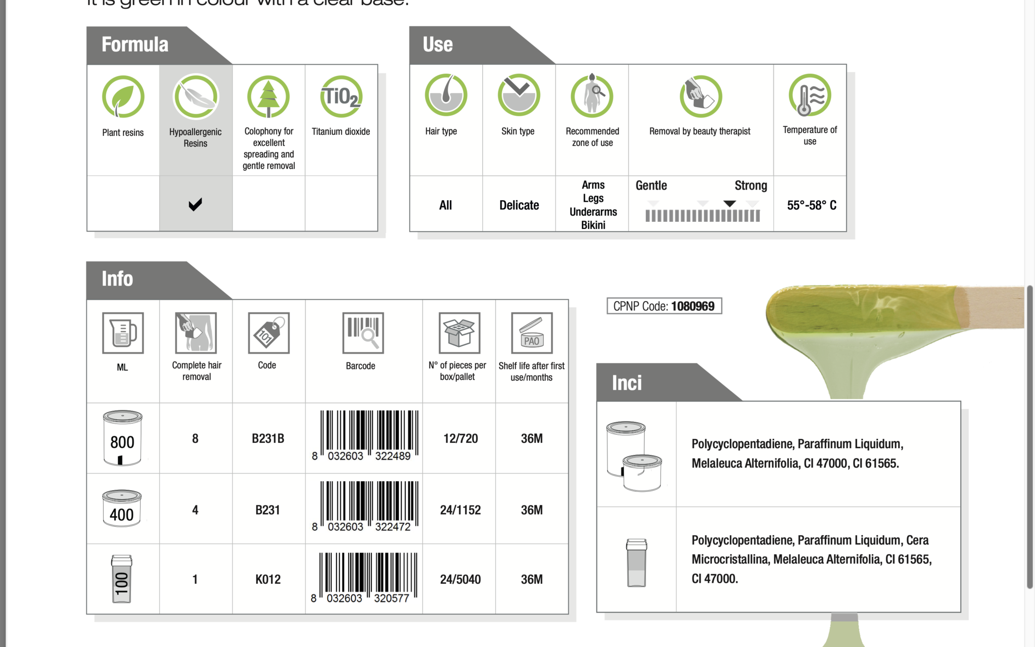 | Waarschuwing | Test de temperatuur van de wax altijd voordat je deze aanbrengt |