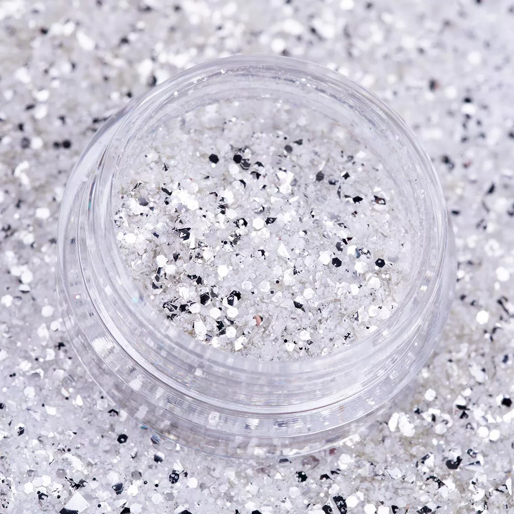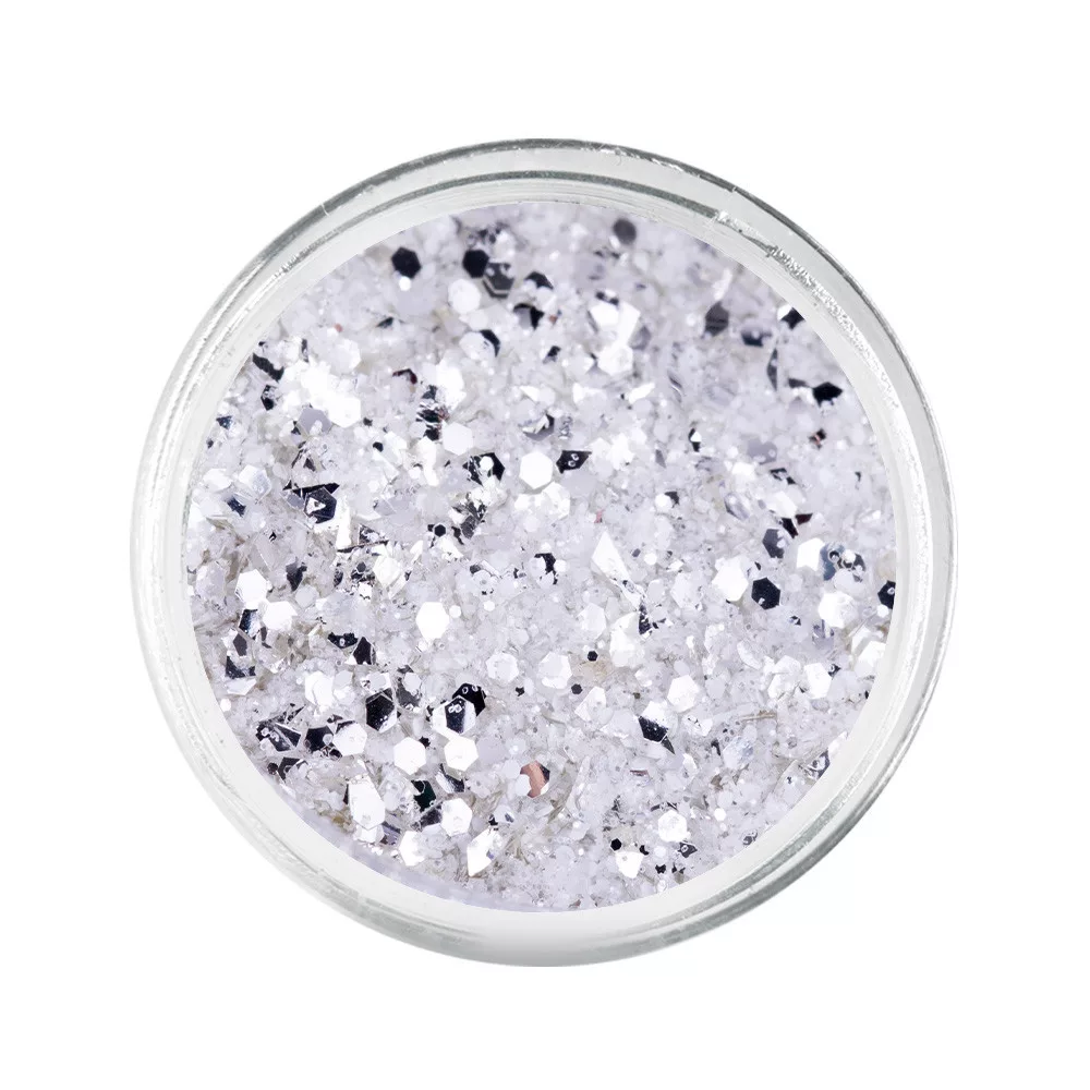 Een unieke, zilverachtige gloed als maanstof! Een unieke decoratie in de originele vorm van vorst! Een semi-transparante tint van dikke en glinsterende zilver- en witte deeltjes gecombineerd in een intrigerende mix!