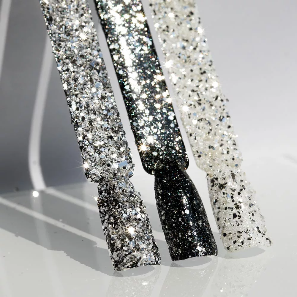 - Uitharden in de lamp en genieten van het glanzende effect in een glitterversie.