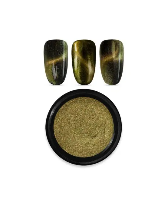 Het Cat Eye Pigment Powder is een speciaal nagelpoeder dat een magnetisch effect creëert op je nagels. Het goudkleurige pigment reflecteert het licht en zorgt voor een fascinerend en kleurrijk Cat Eye-effect.