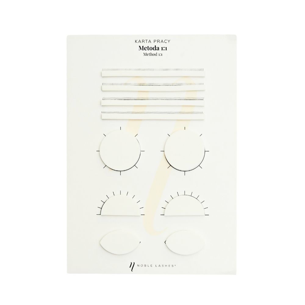 Oefenbladen zijn sjablonen die de natuurlijke oogvorm nabootsen, waardoor je kunt oefenen met het plaatsen van wimperextensions zonder een echt persoon. Ze zijn ideaal voor het perfectioneren van technieken zoals de klassieke 1:1-methode, volume en wimpermapping.