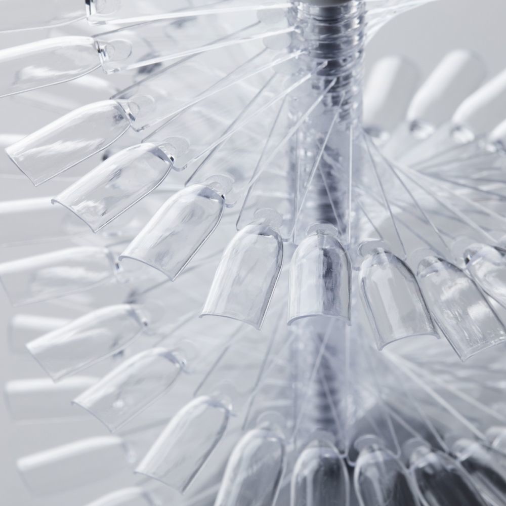 Het spiraalvormige standaard zorgt voor een interessante en esthetische presentatie van alle kleuren van klassieke en gelpolishkeuren en nailart. Het bestaat uit 30 transparante stokjes, die elk aan weerszijden eindigen met uiteinden met vierkante randen. Elk van de tips is gemaakt van duurzaam plastic. Het sjabloon is eenvoudig op te vouwen , waardoor het geheel makkelijk op te bergen is.