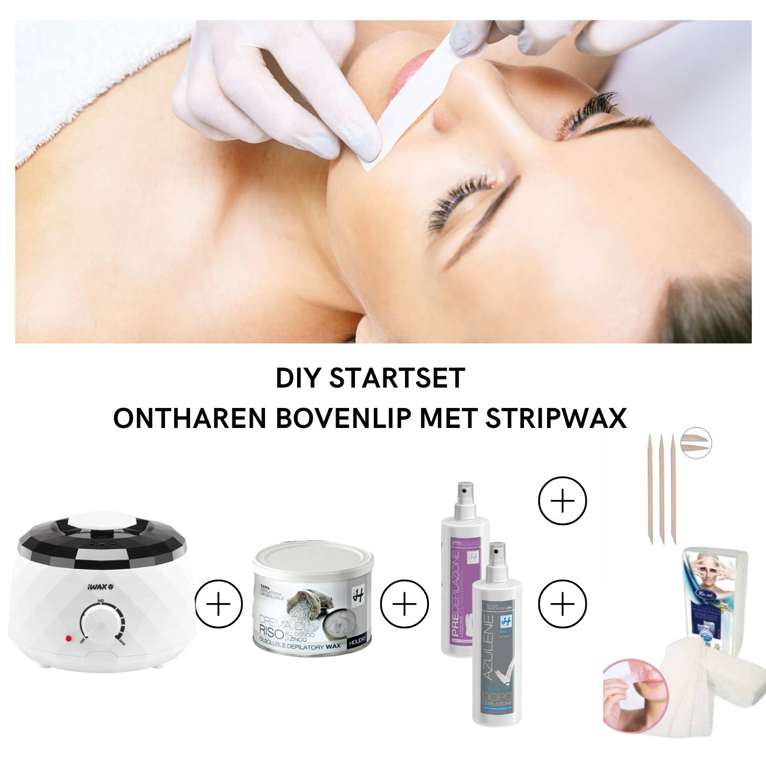 - Complete set met alle benodigdheden voor bovenlip ontharen.