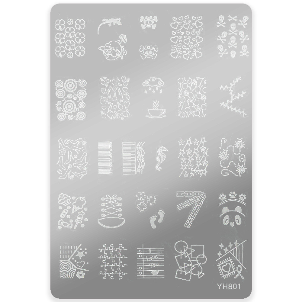 Shop YH Stempelplaat met Patronen Nr. 801 bij Beauty Box Cosmetics. Maak gedetailleerde, creatieve designs voor je nagels met deze hoogwaardige stempelplaat.