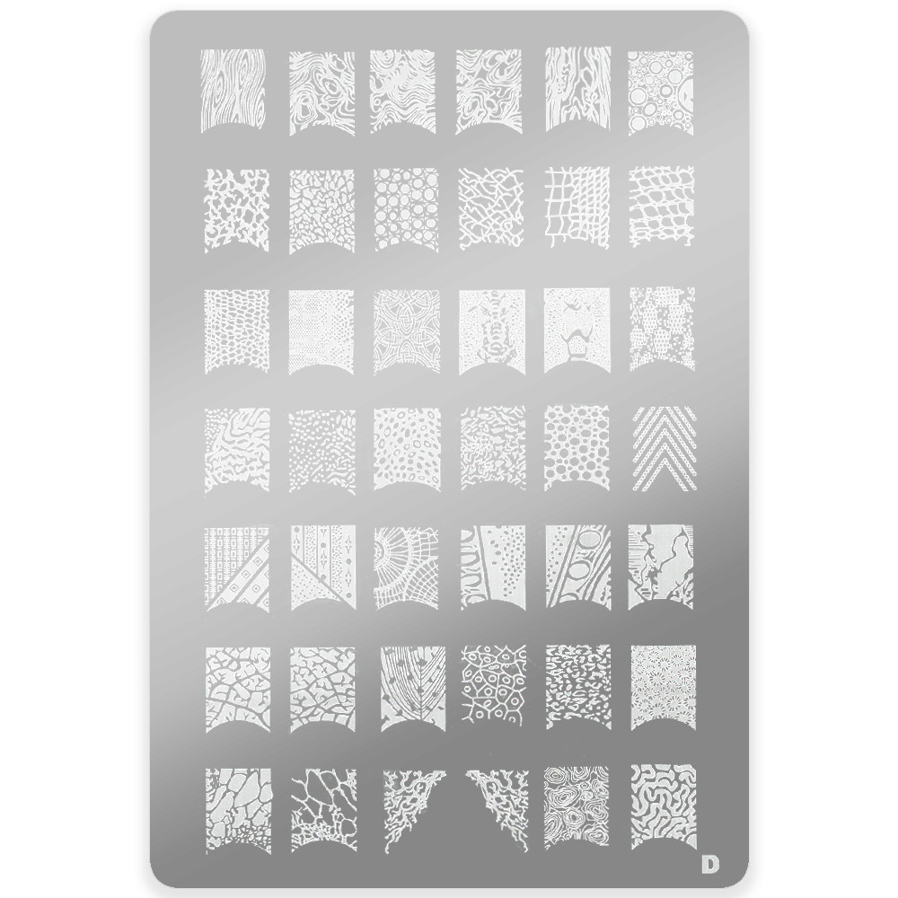 Stempelplaat met Patronen D (maat L) is de perfecte tool voor het creëren van gedetailleerde en unieke nagelontwerpen. Met een breed scala aan patronen biedt deze plaat een snelle en gemakkelijke manier om kunstzinnige manicures te stempelen met zowel hybride als klassieke nagellakken.