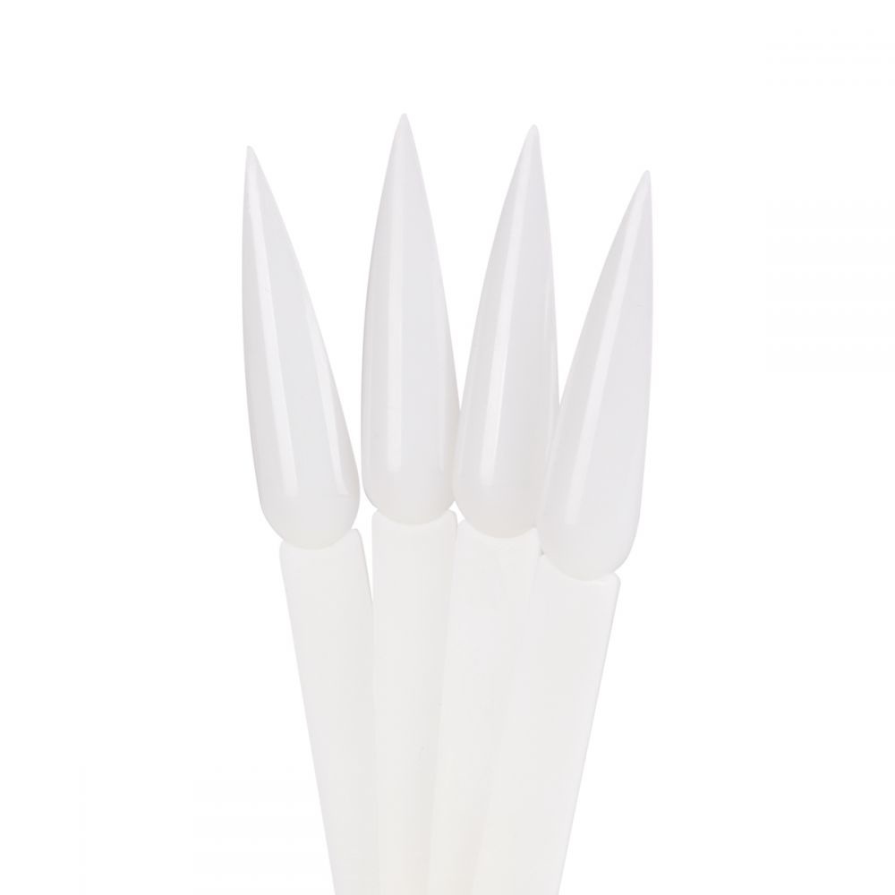 Stilettosjablonen in een melkachtige kleur zorgt voor een esthetische presentatie van alle kleuren van klassieke en hybride vernissen, pollen of gels. Het bestaat uit 50 individuele tips met een spitse vorm . Vastgemaakt is een praktisch, afneembaar wiel dat het gemakkelijk maakt om het geheel op te bergen . Elk van de tips is gemaakt van duurzaam plastic.