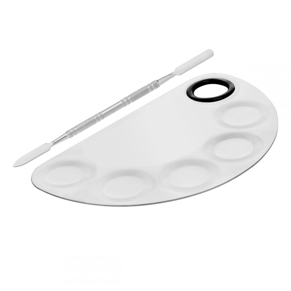 Creëer de perfecte look met ons multifunctionele palet voor het mengen van cosmetica! Dit handige accessoire is onmisbaar voor schoonheidssalons en biedt voldoende ruimte voor het mengen van verschillende kleuren foundation, lippenstift, pigmenten en meer. Met 5 uitsparingen en een vlak middenstuk om kleuren te combineren, zal dit palet je werk enorm vergemakkelijken. Inbegrepen is ook een omkeerbaar spatel met twee functionele tips voor gemakkelijk mengen van producten. De set is eenvoudig schoon te maken en heeft een elegante uitstraling. Probeer het nu en maak het werk van de schoonheidsspecialiste gemakkelijker!