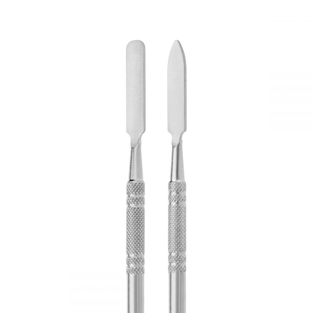 Ook inbegrepen is een omkeerbaar spatel met een semi-matte afwerking voor het gemakkelijk mengen van producten. De tool heeft twee functionele tips met verschillende vormen, afhankelijk van de behoeften. Het apparaat ligt perfect in de hand , en dankzij de elegante groeven op het handvat glijdt het er niet in, wat het werk enorm vergemakkelijkt.