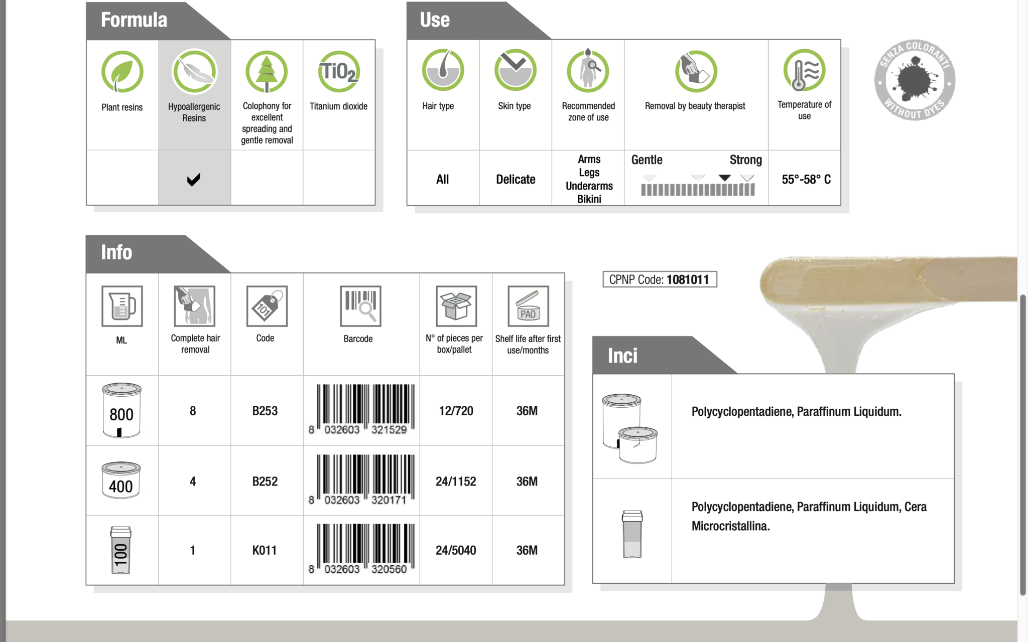 - Type: lipo-oplosbare gel stripwax